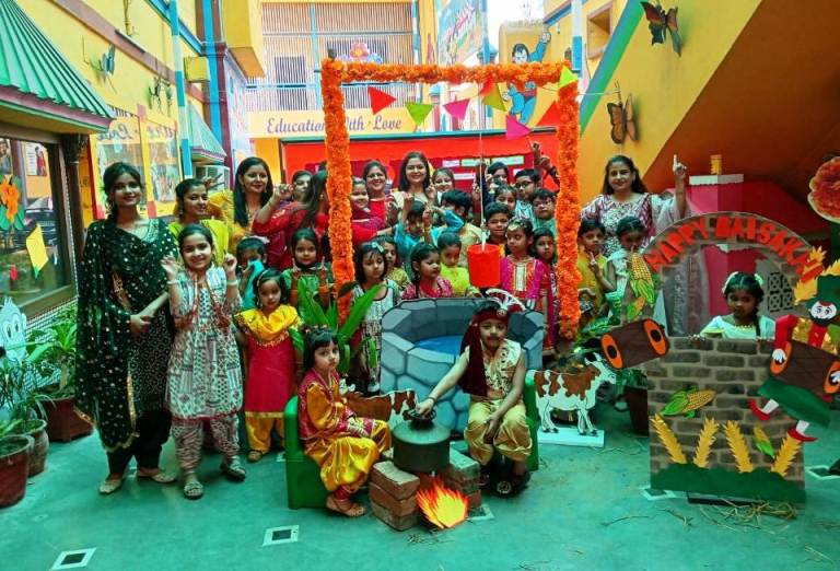 Principal Sangeeta Notani informed the children about Baisakhi festival and told them that it is a folk cultural festival which is especially celebrated by the people of Sikh religion in the joy of harvest in Punjab province. Guru Gobind Singh Ji, the tenth Guru of Sikhs, had said that the highest form of worship is to love humanity, protect the weak and take proper care of them. All the little children in the school came in Punjabi costumes and presented Punjabi dance and Bhangra. Children were also given information about Baisakhi festival through drawing and craft.
